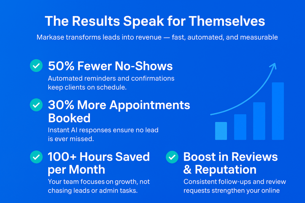 Markase makes impossible growth simple. Our AI systems do more than book appointments — they elevate your operations, automate what matters, and give you back time.